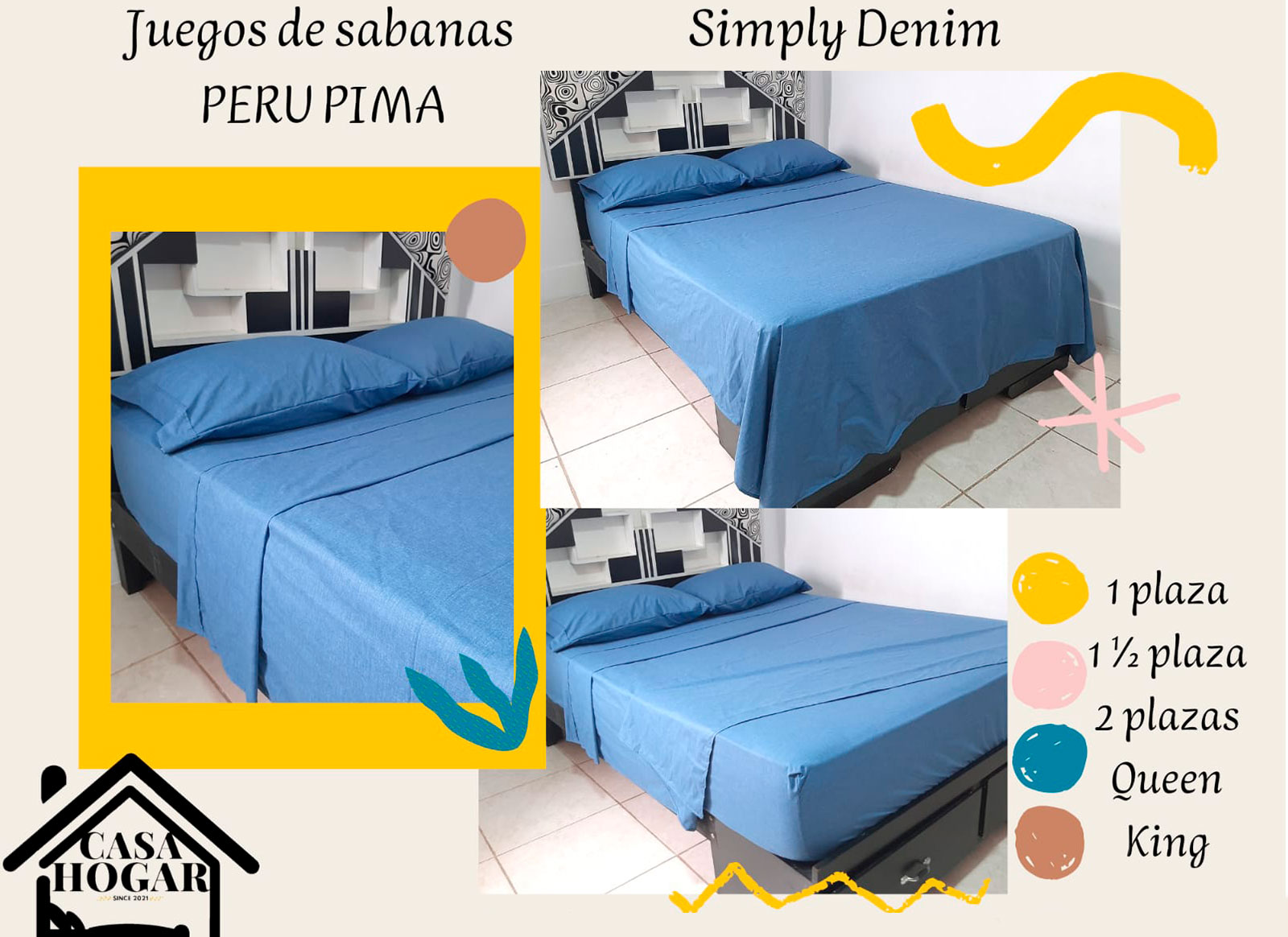 2 valoraciones en Juego de Sábanas Perú Pima – Colección Simple Denim